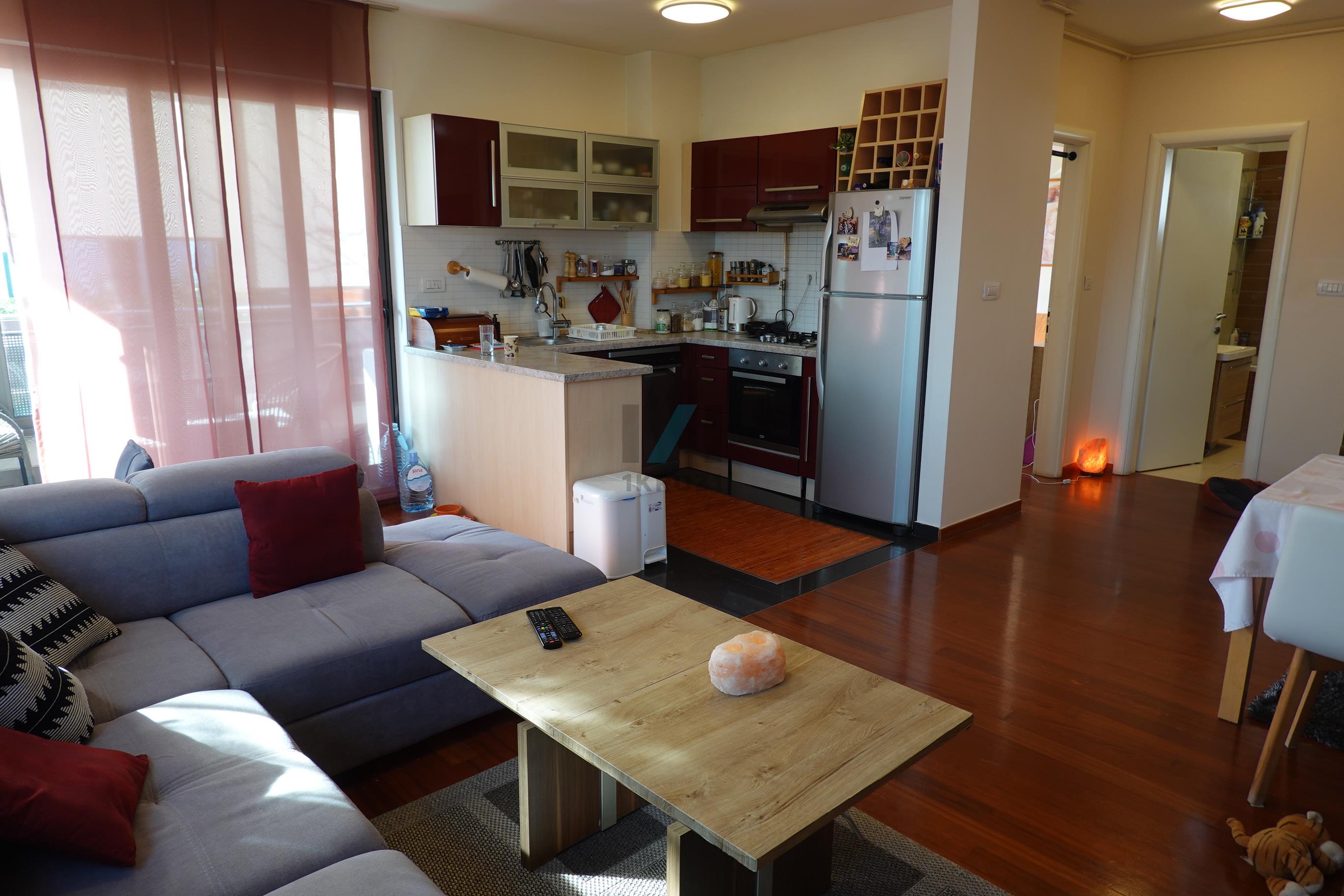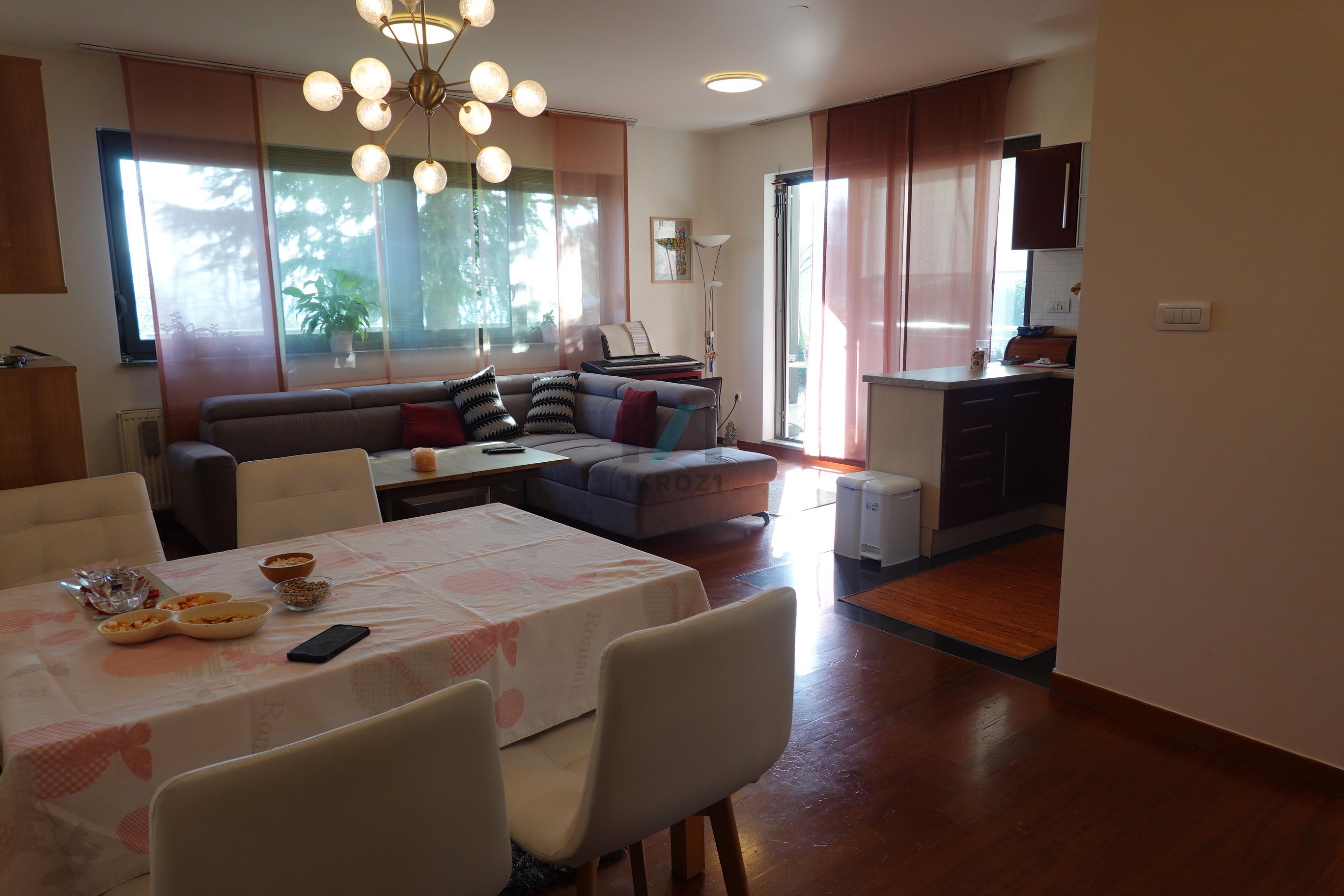 Prodaja, stan, Lukšić, 3 s, 72 m2 stan sa loggiom, vrt 150 m2, 2 vanjska parkirna mjesta po 13 m2, sve obračunski 93 m2. Potpuno uređeno, mirno okruženje, prozračan i jako svijetao stan. Trgovine, ljekarne unutar 1 km.